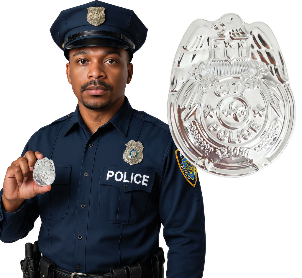 Erwecke das Karnevalsgefühl mit einem zeitlosen Polizeiabzeichen. Dieses symbolträchtige Accessoire bringt die klassische Aura von Ordnung und Gerechtigkeit auf jede Feier. Ideal für Mottopartys und Kostümabende, lädt es zum Rollenspiel ein, eingebettet in die faszinierende Welt der Ordnungshüter. Das Abzeichen verkörpert Stärke, Integrität und Autorität, perfekt für jeden, der in eine heldenhafte Rolle schlüpfen möchte. Lassen Sie den inneren Helden aufleben und verleihen Sie Ihrem Karnevalskostüm eine authentische Note. Ideal für Themenpartys oder einfach nur als Dekoration.