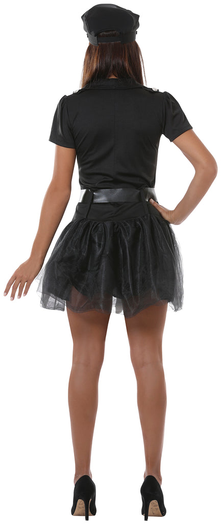 Erlebe die wilde Seite des Karnevals mit diesem ausdrucksstarken Polizei-Ensemble. Die Uniform in klassischem Schwarz verleiht dir das Charisma einer Stadtwächterin und bringt Abenteuerflair in jede Feier. Der geschickt designte Hut und die glänzenden Abzeichen versprühen Autorität, während der Gürtel das Outfit abrundet. Eine Mischung aus Eleganz und Spaß, perfekt für alle, die den Karneval als Gelegenheit sehen, in eine neue Rolle zu schlüpfen und sich von der Masse abzuheben.