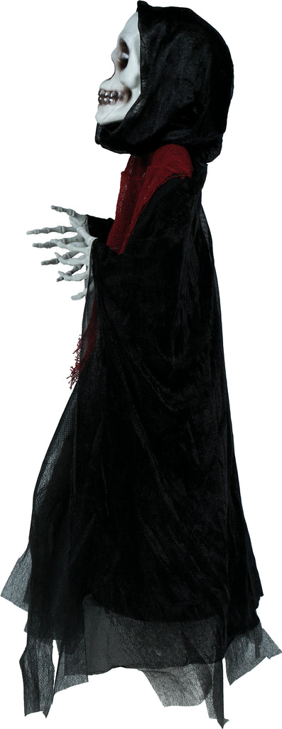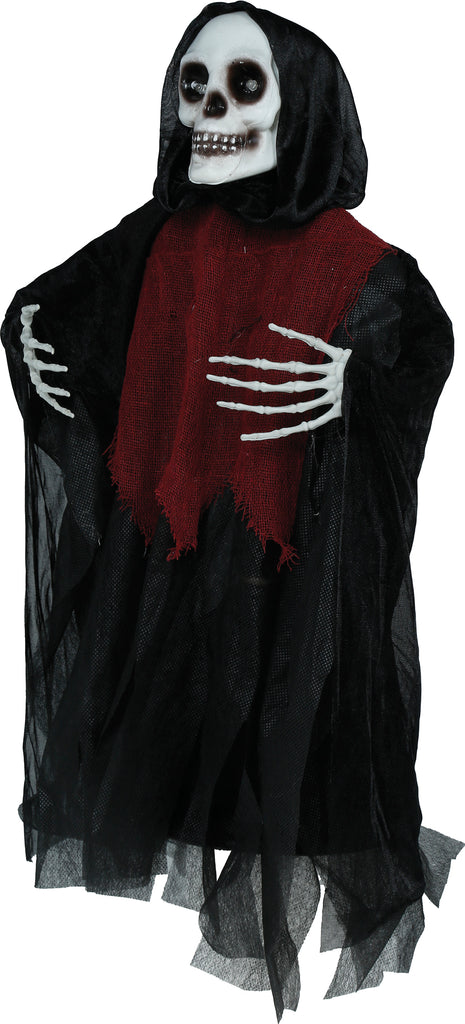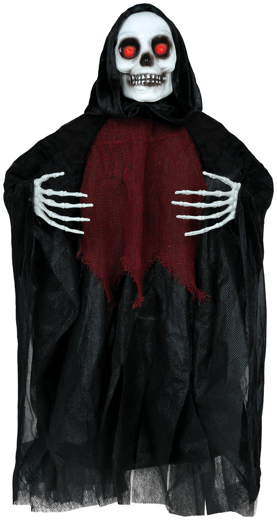 Lassen Sie sich von einem schaurigen Skelett in der Dunkelheit der Nacht begleiten. Diese unheimliche Halloween-Dekoration begeistert mit ihren roten Augen, die finster in die Dunkelheit starren. Das Skelett trägt eine tiefschwarze Kutte, die geheimnisvoll um seine knochigen Finger schwingt und jeden Raum in eine gruselige Atmosphäre taucht. Perfekt für eine Nacht voller Schrecken, verleiht es jeder Halloween-Feier das gewisse Etwas. Der unheimliche Ausdruck und die klaren Kontraste sorgen für Gänsehaut. Die Figur ist ein meisterhaft gestaltetes Accessoire für alle, die ein unvergessliches Halloween-Erlebnis suchen.