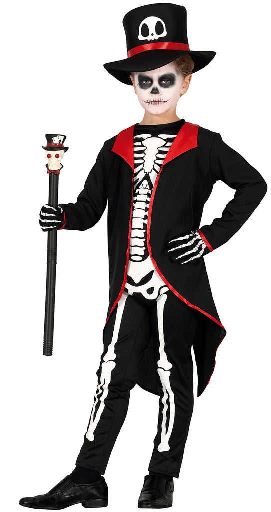 Verwandeln Sie die Halloween-Nacht in ein unvergessliches Abenteuer mit diesem einzigartigen Skelettkostüm. Der schwarze Mantel und die detaillierten Skelett-Prints lassen Ihr Kind wie einen geheimnisvollen Zauberer der Nacht erscheinen. Der markante Hut mit kunstvollem Design zieht alle Blicke auf sich und verspricht einen Hauch von Magie. Perfekt für kleine Geister, die die Dunkelheit erkunden und auf der Suche nach schaurigen Geschichten sind. Dieser Klassiker sorgt für eine Menge Gruselspaß und lässt Kinder die mystische Atmosphäre von Halloween voll und ganz genießen.
