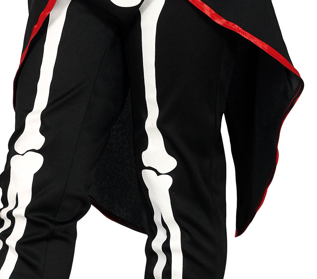 • Skelettkostüm mit auffälligen weißen Details und langen Mantel für echten Grusellook