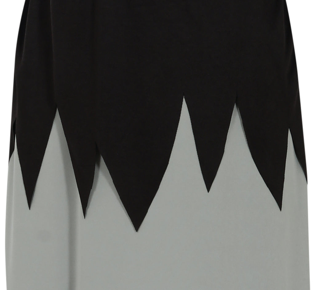 - Grauer Umhang und zackiger Saum schaffen mystische Eleganz