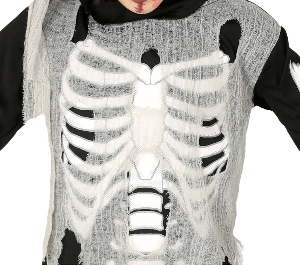 Bereit für ein unvergessliches Halloween-Abenteuer? Das unheimliche Skelett Ninja Kostüm bietet jungen Abenteurern den perfekten Look. Stell dir vor, du schleichst wie ein Schatten durch die Nacht, während dein grimmiges Skelett-Design die Blicke fesselt. Der passende Kapuzenhelm verbirgt Geheimnisse im Dunkeln, während elegante Bänder die Silhouette akzentuieren. Tauche ein in die Welt der Geister und Schatten, wo jeder Schritt schnell und lautlos ist. Perfekt, um als nächtlicher Held oder mystischer Kämpfer die Halloween-Partys unsicher zu machen. Dieses unverwechselbare Design lädt dazu ein, in eine geheimnisvolle Welt voller Spannung und Magie einzutauchen.