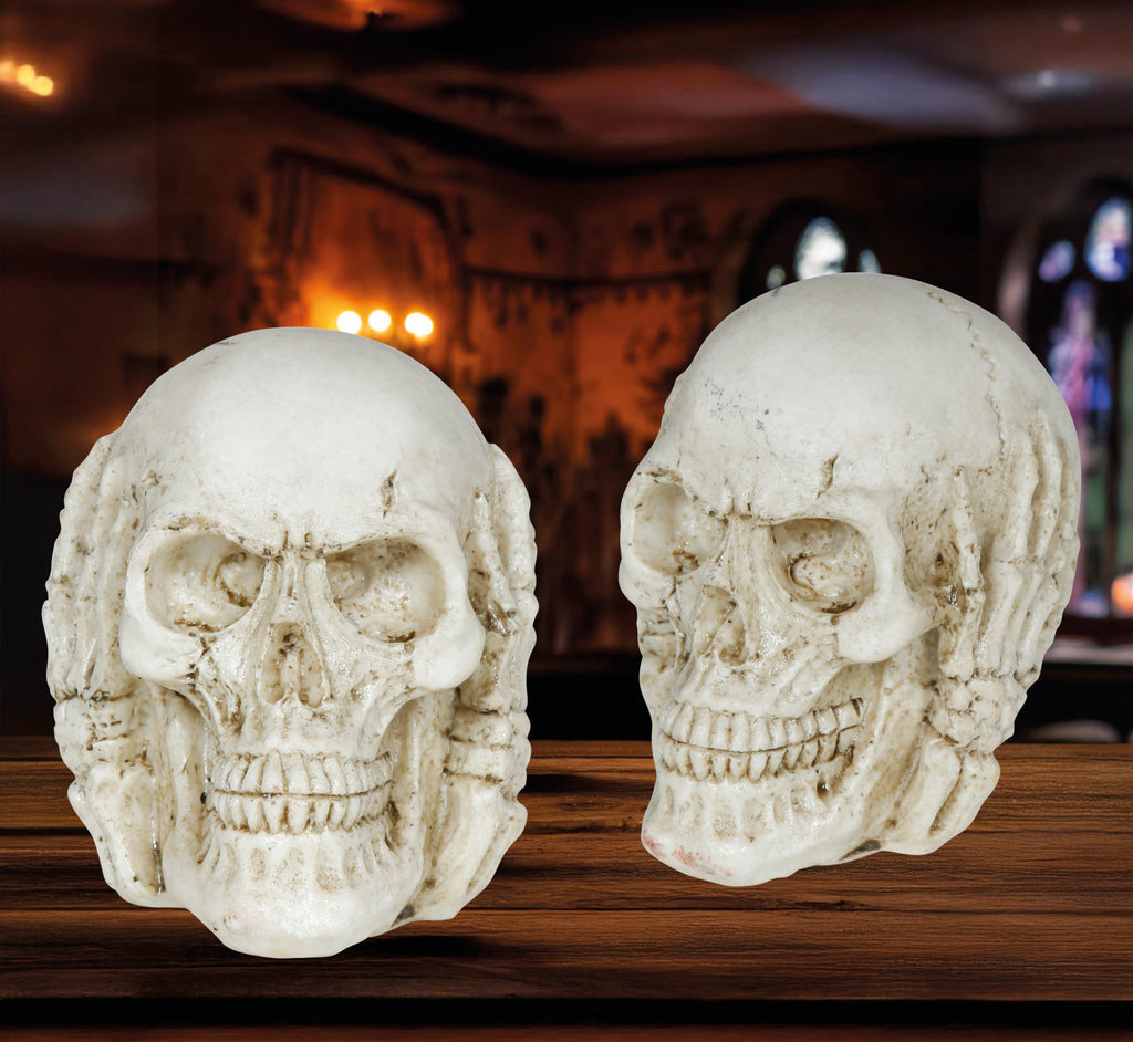 Dieser kunstvoll gestaltete Totenkopf bringt eine geheimnisvolle Atmosphäre in jeden Raum. Perfekt für die düstere Saison versprüht er einen Hauch von Mystik. Das detaillierte Skelettdesign fasziniert mit seinen realistischen Merkmalen und haucht jedem dunklen Ambiente Leben ein. Ob als Highlight für die Halloween-Nacht oder als Sammlerstück für Enthusiasten des Unbekannten, dieses Stück zieht alle Blicke an. Der Totenkopf ist nicht nur ein Ausdruck der Vergänglichkeit, sondern ein kunstvolles Detail für jede gruselige Umgebung. Lassen Sie sich in eine Welt der Schatten und Geheimnisse entführen und entdecken Sie die subtile Schönheit jenseits des Bekannten.