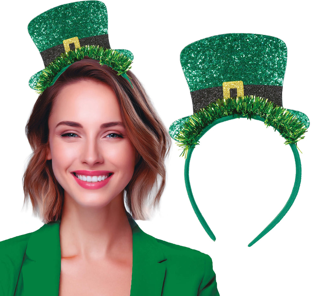 Tauchen Sie ein in die magische Welt des irischen Charmes mit diesem bezaubernden St. Patrick's Day Zylinder-Haarreif. Schimmerndes Grün und glitzernde Details verleihen dem Accessoire einen festlichen Flair, der an die grünen Hügel Irlands erinnert. Perfekt für jede Feier oder Parade, bringt dieser Kopfschmuck das Glück des irischen Kleeblatts in Ihren Tag. Lassen Sie sich von der fröhlichen Atmosphäre beseelen und fühlen Sie sich wie eine irische Legende, die ihr eigenes kleines Stück Magie trägt. Ein Hauch von Glamour und Spaß für unvergessliche Momente.