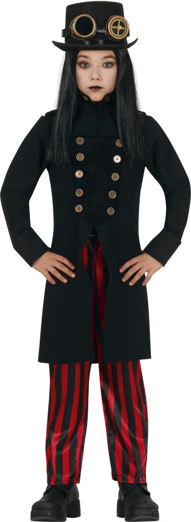 Tritt ein in die geheimnisvolle Welt der Steampunk-Zeit, wo Magie und Technologie verschmelzen. Mit einem eleganten Zylinderhut und auffallenden goldenen Details auf dem Mantel ist jeder Auftritt ein Highlight. Die Kombination aus dunklem Schwarz und kräftigen Rotstreifen der Hose erschafft eine Aura des Unbekannten. Perfekt für junge Abenteurer, die die Grenzen des Gewöhnlichen überschreiten wollen. Lass dich auf eine fesselnde Reise durch Raum und Zeit entführen und entdecke das Geheimnisvolle hinter jedem Knopf und jeder Naht!
