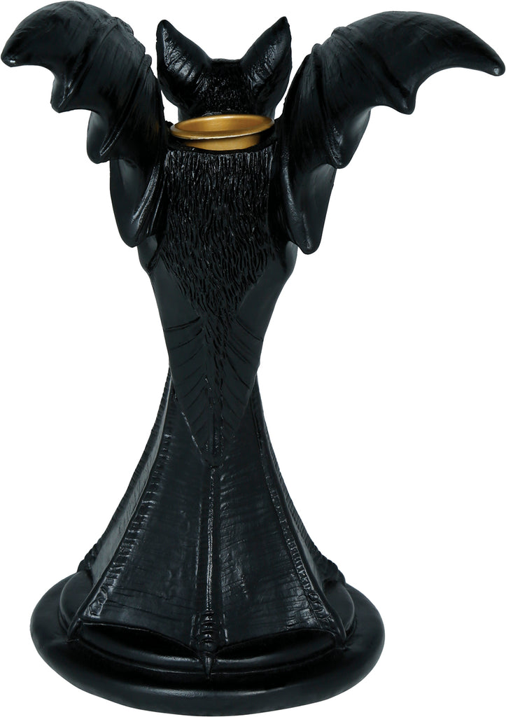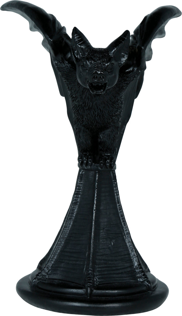 Verleihen Sie Ihrem Heim einen Hauch von mystischem Flair mit diesem einzigartigen Kerzenhalter in Form einer Fledermaus. Perfekt für eine düstere und geheimnisvolle Atmosphäre, wirkt die fantastische Darstellung wie aus einem alten Gruselroman entsprungen. Lassen Sie das unheimliche Wesen der Nacht über Ihr Zuhause wachen und schaffen Sie eine beeindruckende Szenerie, die an Halloween und darüber hinaus fasziniert. Die kunstvolle Gestaltung fängt die Essenz von Dunkelheit und Geheimnis ein und bereichert Ihr Ambiente mit einem Hauch von Magie und Eleganz.
