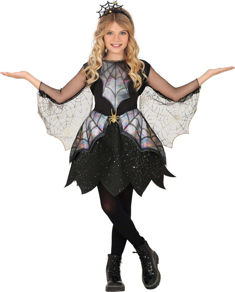Lasst Euer Kind in die geheimnisvolle Welt der Spinnen eintauchen! Dieses Kostüm vereint elegante Details mit einem Hauch von Grusel. Die weit ausgebreiteten Flügel erinnern an zarte Spinnweben, eingefangen in einem glitzernden Nachtzauber. Ideal für Halloween, verwandelt es die Kleinen in spektakuläre Wesen der nachtaktiven Tierwelt. Der schimmernde Effekt der Verzierungen setzt zauberhafte Akzente. Ein Kostüm für fantasievolle Abenteuer im Reich der mystischen Kreaturen, das jedes Halloween unvergesslich macht. Die feinen Details und die dunkle Farbpalette fesseln und faszinieren.
