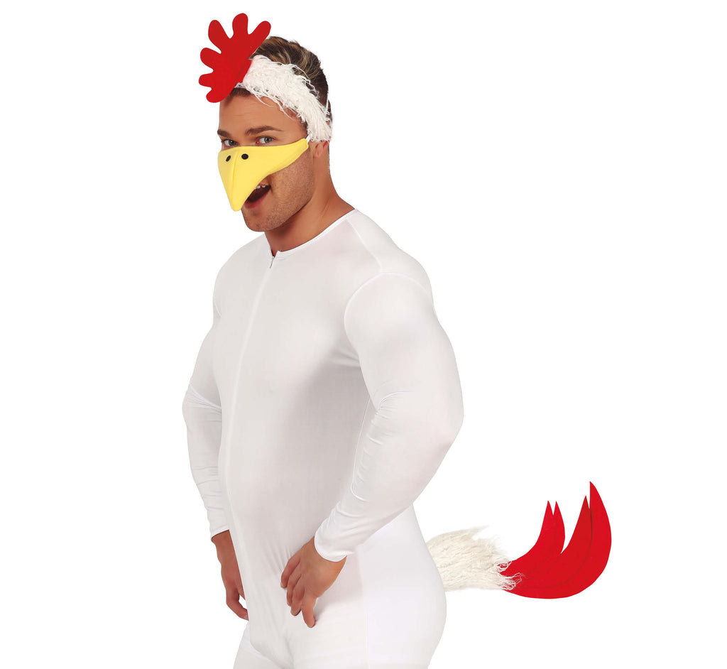 - Hahn Kostümset mit farbenfrohem Kopfschmuck und Schwanz