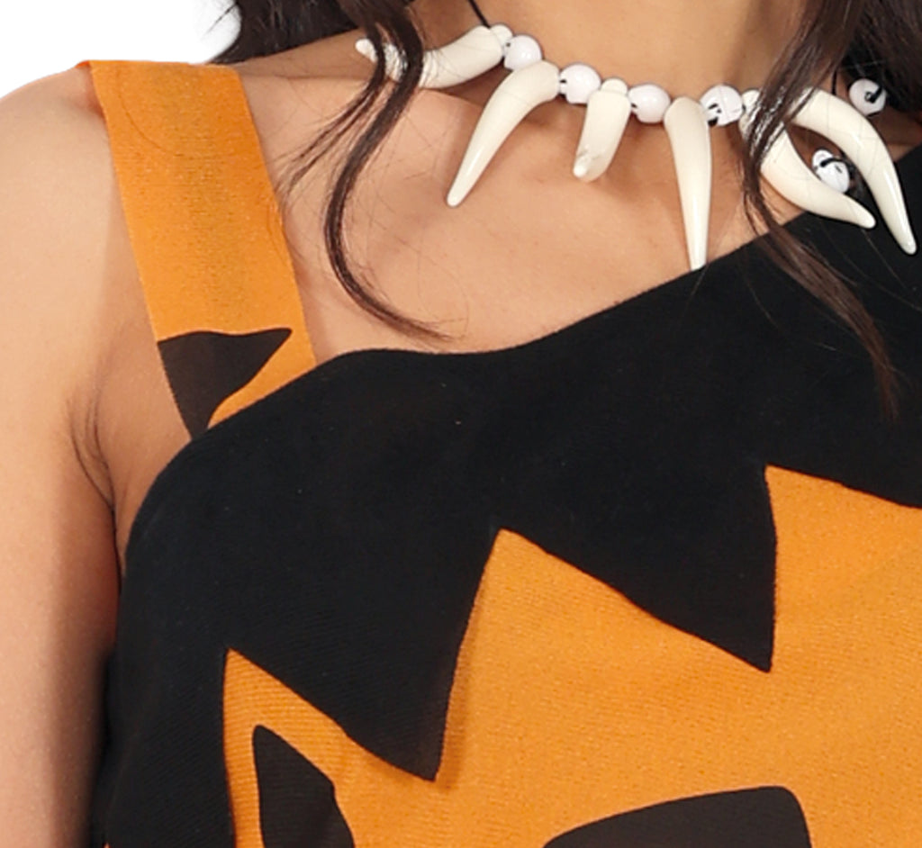 Entdecke das spannende Abenteuer der Steinzeit mit diesem fantasievollen Troglodyten-Karnevalskostüm. Inspiriert von prähistorischen Zeiten, bringt das Kleid ein Hauch von Urzeit-Zauber in jede Feier. Mit seiner dynamischen orangenen Farbgebung und den markanten schwarzen Mustern erzeugt es einen authentischen Höhlenmensch-Look. Perfekt für diejenigen, die das wilde Leben der Vergangenheit erforschen und ihren inneren Wildfang auf Abenteuersuche schicken möchten. Der asymmetrische Schnitt und die verspielten Details sorgen für einen lebendigen Ausdruck, der jede Karnevalsveranstaltung belebt. Der perfekte Begleiter für unvergessliche Partyabende und thematische Events.