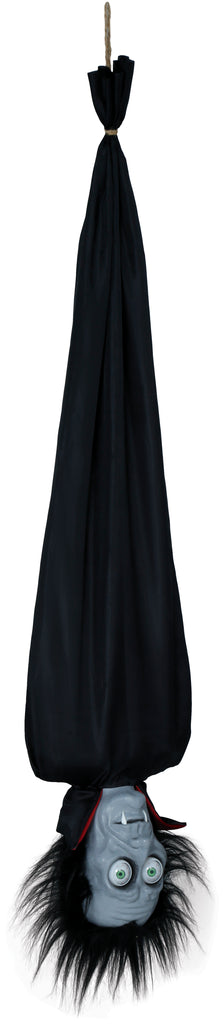 Entdecke die düstere Welt des Grafen der Nacht mit dieser eindrucksvollen Vampir Hängefigur. Perfekt für Halloween, verbreitet sie mit ihren leuchtenden Augen und unheimlichen Geräuschen eine Gänsehaut-Atmosphäre. Hänge sie in dein Zuhause und verleihe jedem Raum eine gespenstische Eleganz. Der Vampir wirkt aus seinem Kokon heraus und scheint bereit für die Jagd. Lass dich von der mystischen Aura dieser Figur in eine Welt voller Schauergeschichten entführen und erlebe die Magie der dunkelsten Nacht des Jahres.