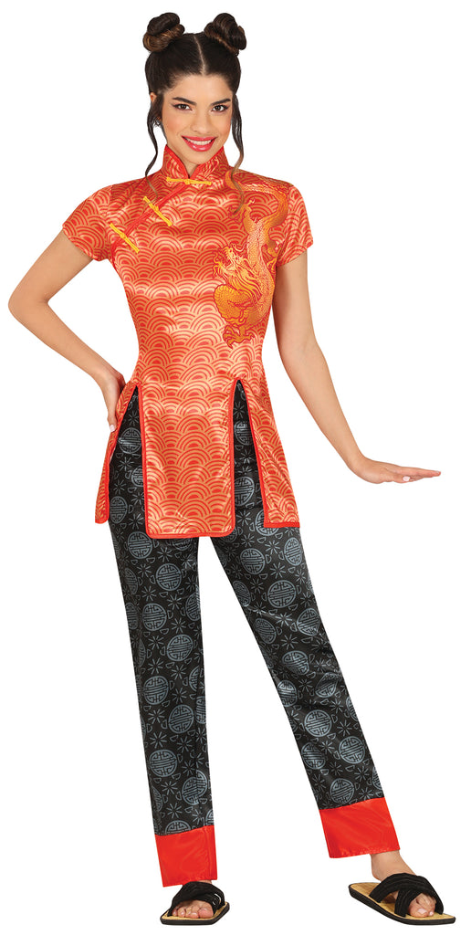 Entfliehe in die Welt der Drachen und Geheimnisse mit unserem kunstvollen Asien Look Kostüm. Dieses Set vereint traditionelles chinesisches Flair mit modernen Elementen, perfekt für das nächste Karnevalsabenteuer. Der reich verzierte rote Oberteil mit stilvollem Drachenmotiv schafft eine kraftvolle Atmosphäre der Mythen. Kombiniert mit eleganten schwarzen Hosen, die kulturelle Symbole tragen, transportierst du dich direkt in die Faszination der Weltkulturen. Erlebe ein unvergessliches Fest der Farben und Geschichten, inspiriert durch Jahrhunderte von Geschichte und Tradition. Ein Kostüm, das nicht nur visuell beeindruckt, sondern auch kultige Eleganz versprüht.