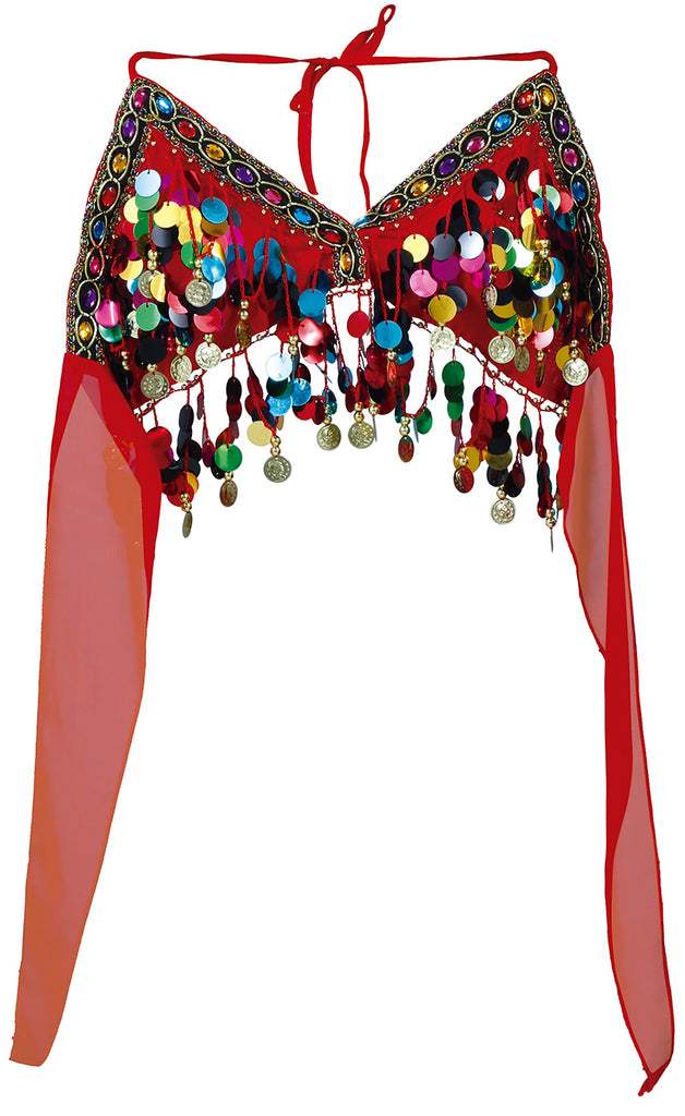 Bereiten Sie sich vor, die Bühnen dieser Welt als glanzvolle Wüstenprinzessin zu betreten. Dieser Paillettenbesetzte Top verführt mit einem Design, das die funkelnde Eleganz orientalischer Nächte einfängt. Jedes Detail erzählt von farbenfroher Pracht und exotischer Mystik, perfekt für das nächste Karnevalsabenteuer als schillernde Märchenfigur. Die lebhaften Farben und glitzernden Pailletten erschaffen eine Aura, die an die zauberhaften Erzählungen aus 1001 Nacht erinnert. Ob bei einer Show oder einem festlichen Event, dieses Kostüm entfesselt den Charme einer fernen Welt. Ideal, um in die Rolle einer sagenhaften Abenteuerfigur zu schlüpfen und magische Momente zu kreieren.